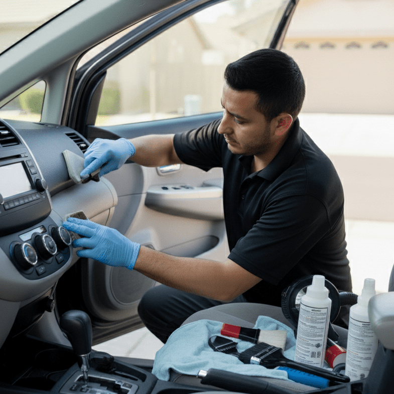 DASH, DOORS, AND CONSOLE CLEANED AND CONDITIONED